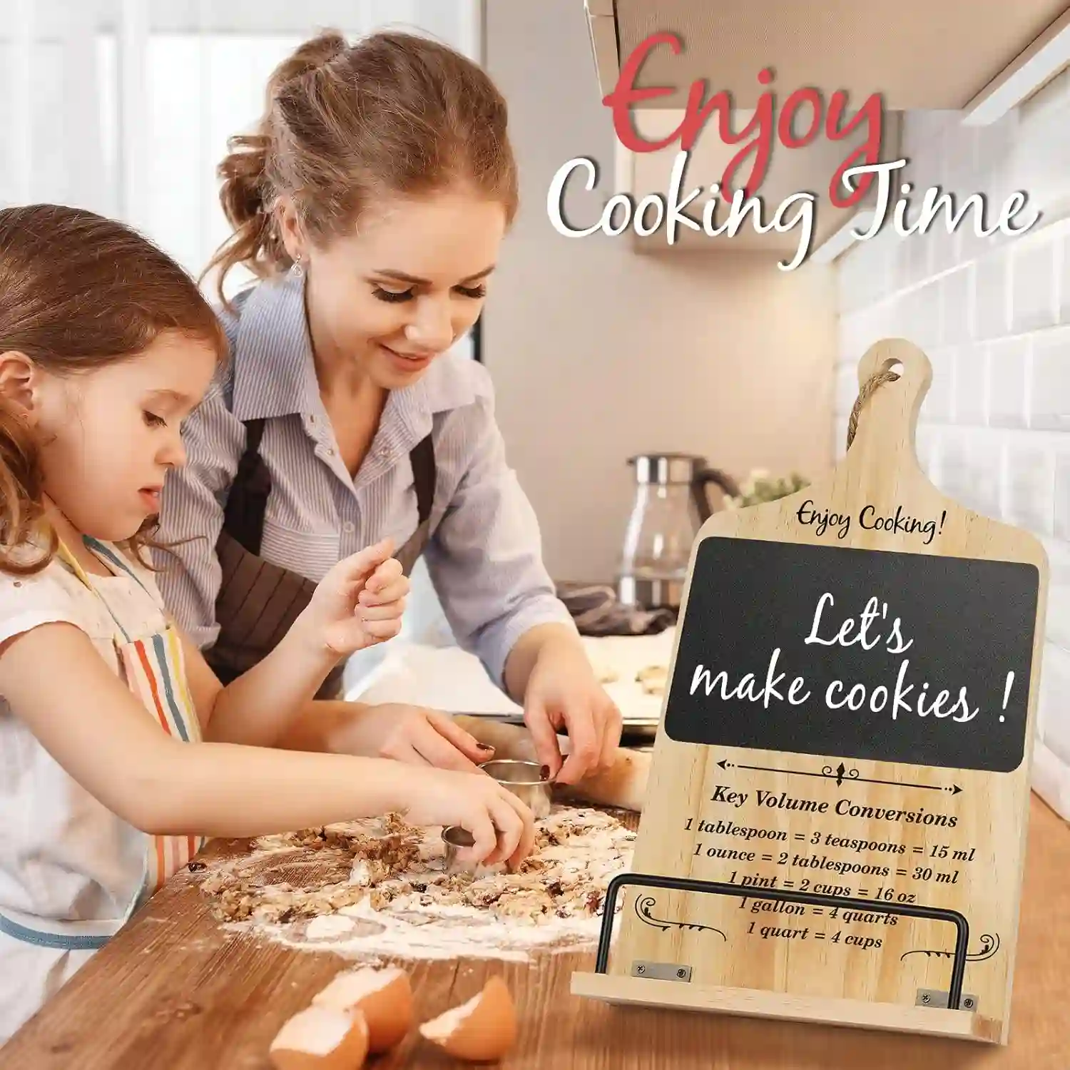 📖 Perfect Recipe Holder: This stylish cookbook stand is a must-have for any kitchen, offering an elegant way to organize recipes. Featuring a built-in chalkboard for notes and a handy conversion chart, it’s a functional and decorative addition to your cooking space.